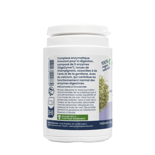 Le fait de manger trop vite ou de ne pas mastiquer convenablement conduit bien souvent à mal digérer. Le manque de salive peut aussi être la cause de troubles digestifs par le manque d’enzymes (amylase notamment). Afin de compenser ces troubles, nous vous proposons Oemine DIGEST, un complément alimentaire d’origine naturelle contenant les enzymes indispensables à la digestion des lipides, des protides et des glucides, ainsi que de l’anis et du calcium marin alcalin. Ce complexe enzymatique innovant pour la digestion est composé des 5 enzymes clefs (DigeZyme®) issues de champignons, associées à de l’anis et de la gentiane. Avec du calcium, qui contribue au fonctionnement normal des enzymes digestives. Contient :