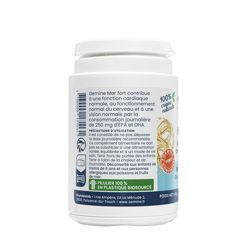 Oemine Mer Fort est riche en oméga-3 sous forme de phospholipides. Ce qui les rend solubles et mieux assimilables que les huiles de poisson.